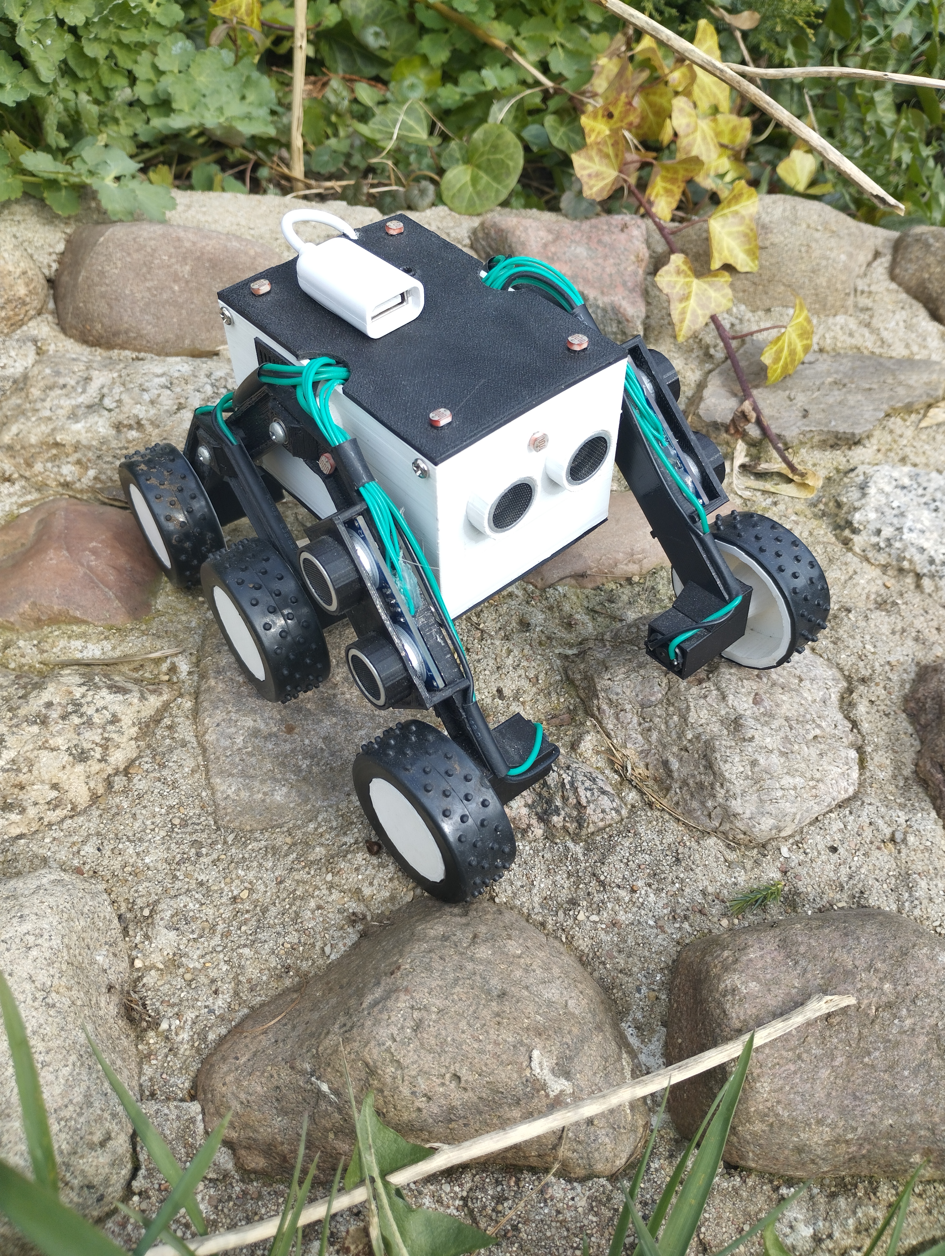 Meet RoBoot: a 3D-printed robot built for data collection and reinforcement learning tests. Outfitted with ultrasonic and light sensors, it navigates uneven terrain on six wheels for stable ground contact. Its modular design enables easy customization, making it ideal for robotics research.